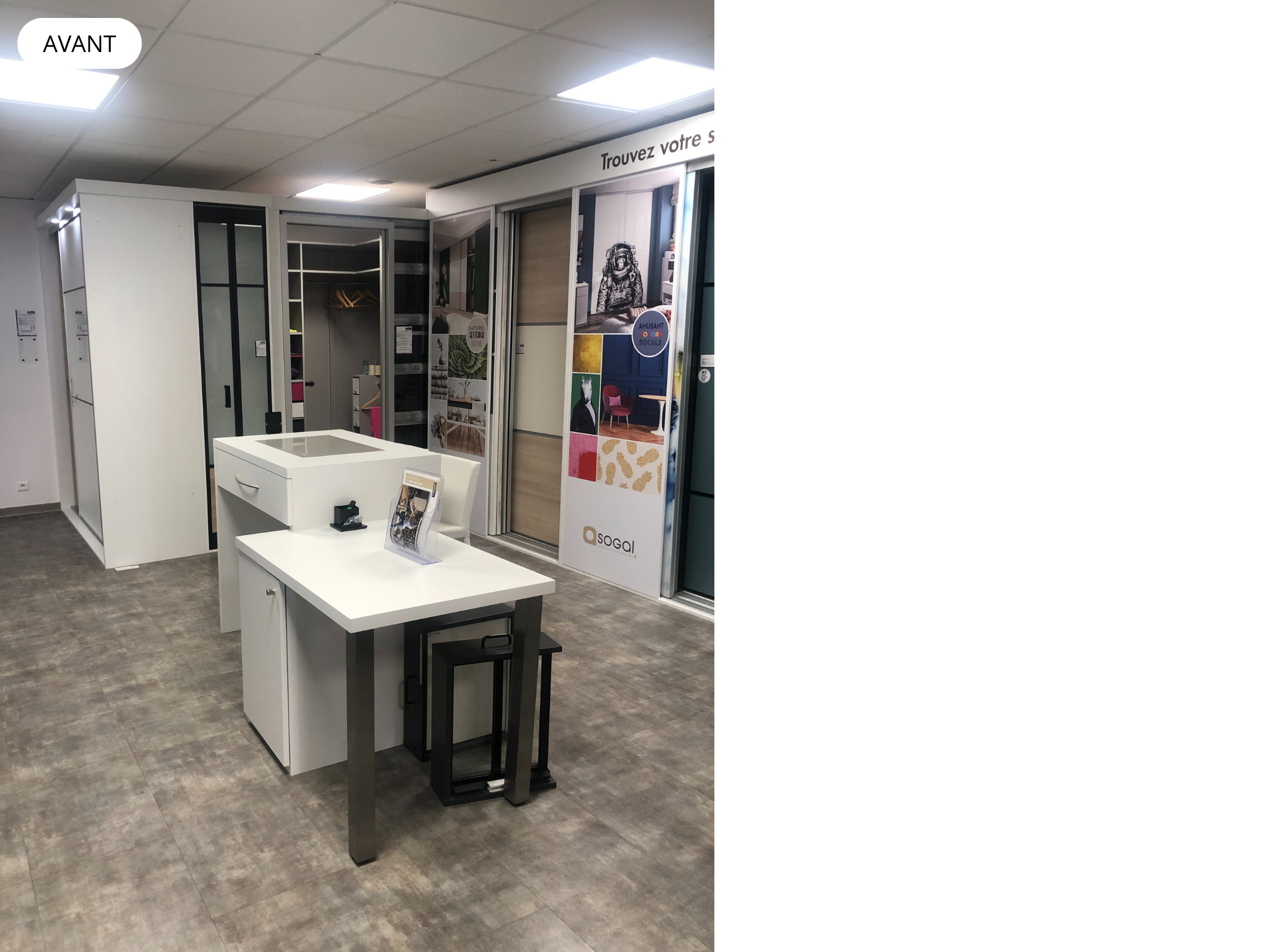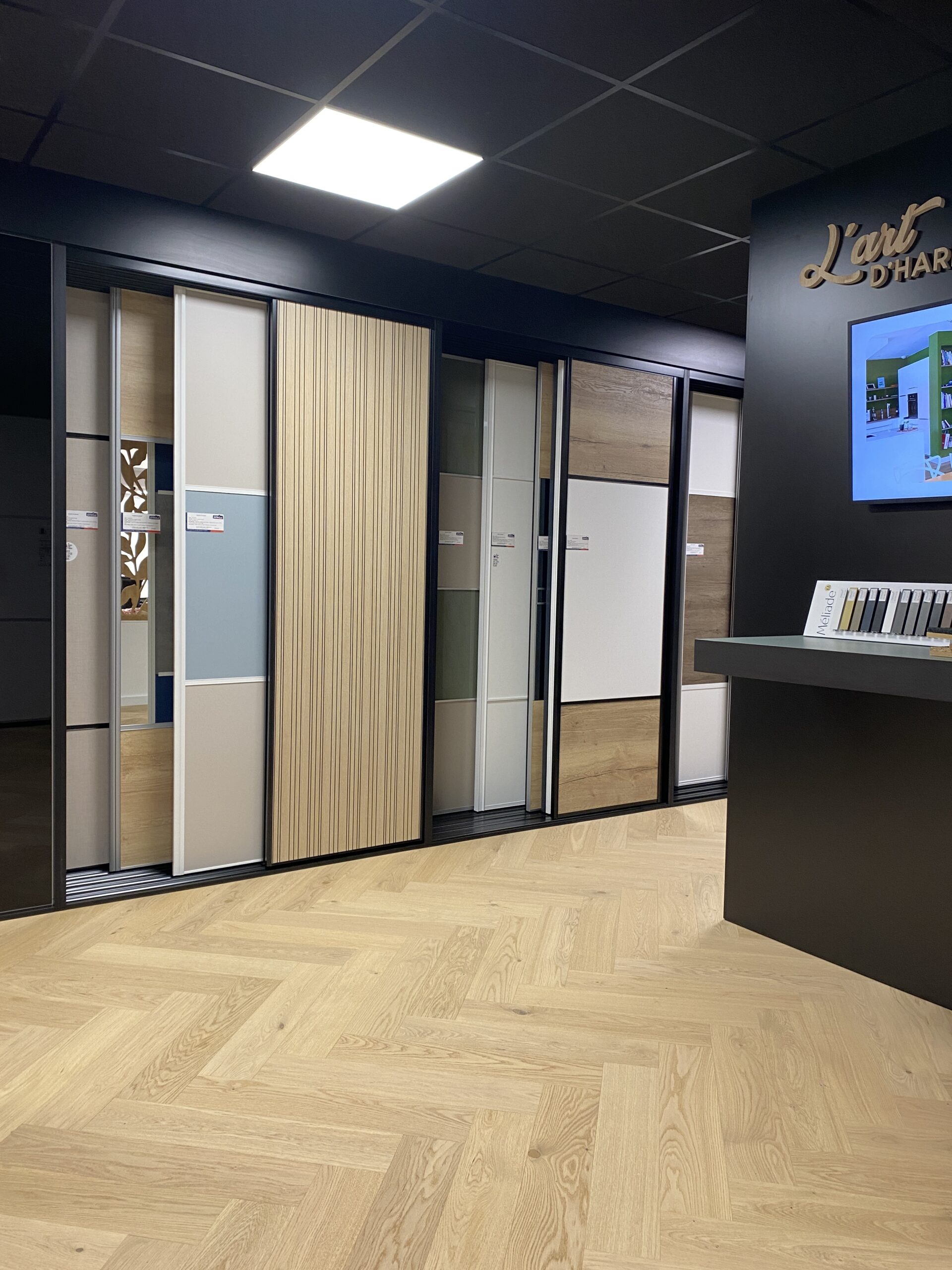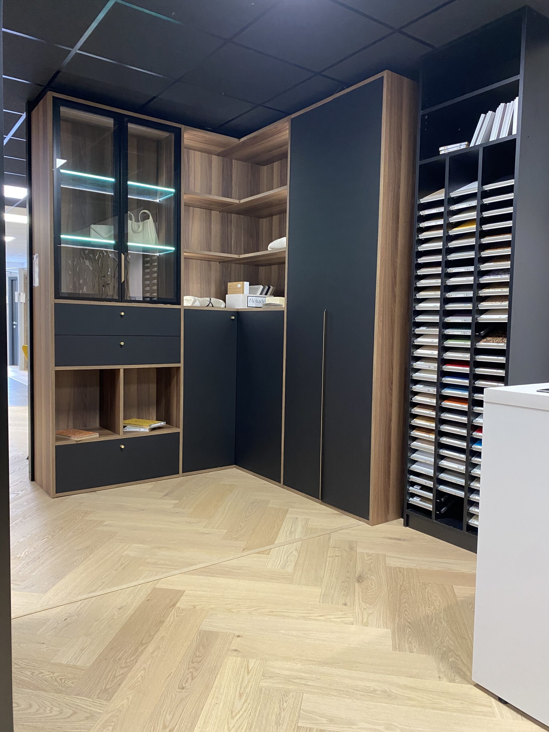 Aligner la zone placards/dressings avec le reste de l’espace menuiserie intérieure et agencement (salle expo rénovée fin 2021).