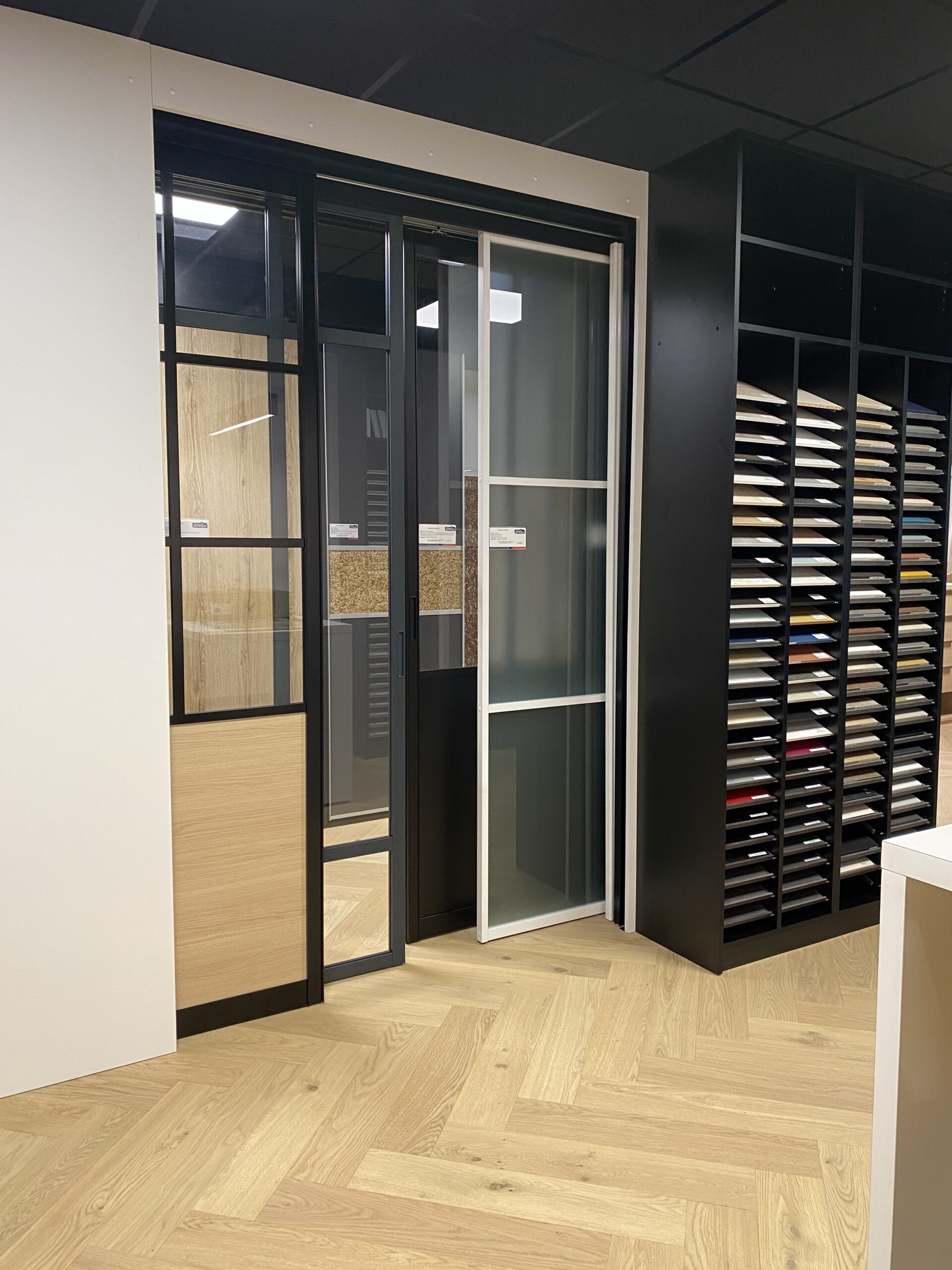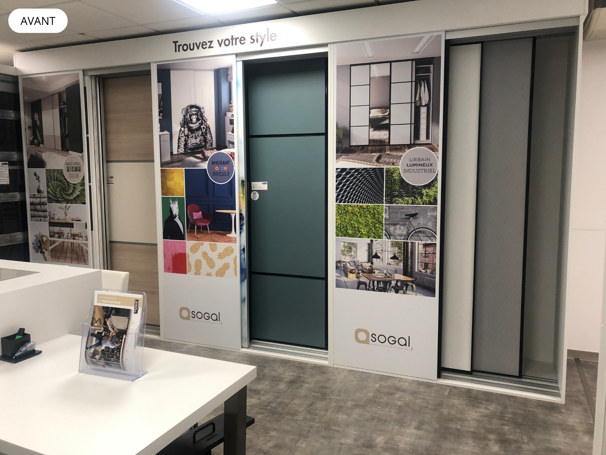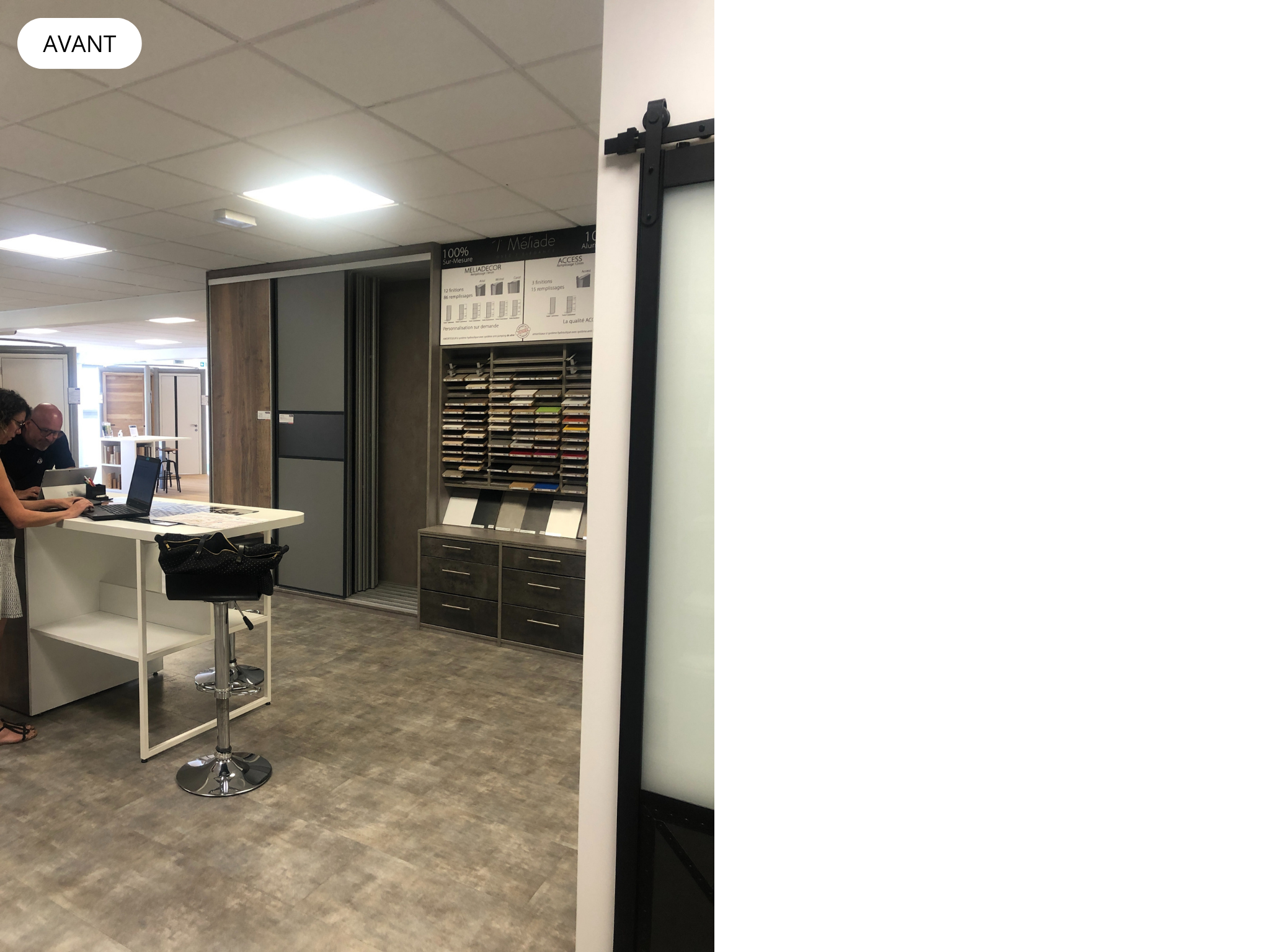 Aligner la zone placards/dressings avec le reste de l’espace menuiserie intérieure et agencement (salle expo rénovée fin 2021).